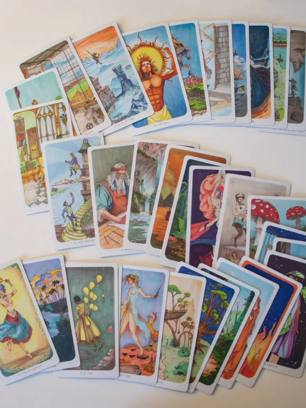 Considering this deck is supposed to be a misprint, I’m thankful as the vibrant colours are beautiful! The cardstock is luxury. Linen on the front, the backs are soft touch, both my absolute favourite types of finish. I again, love how my deck was packaged, it is always a delight to open a deck from Tarot Grove. You always feel like extra care is always taken in the service of this shop. I’m thrilled again! Thank you! โฅ๏ธโญ๏ธ