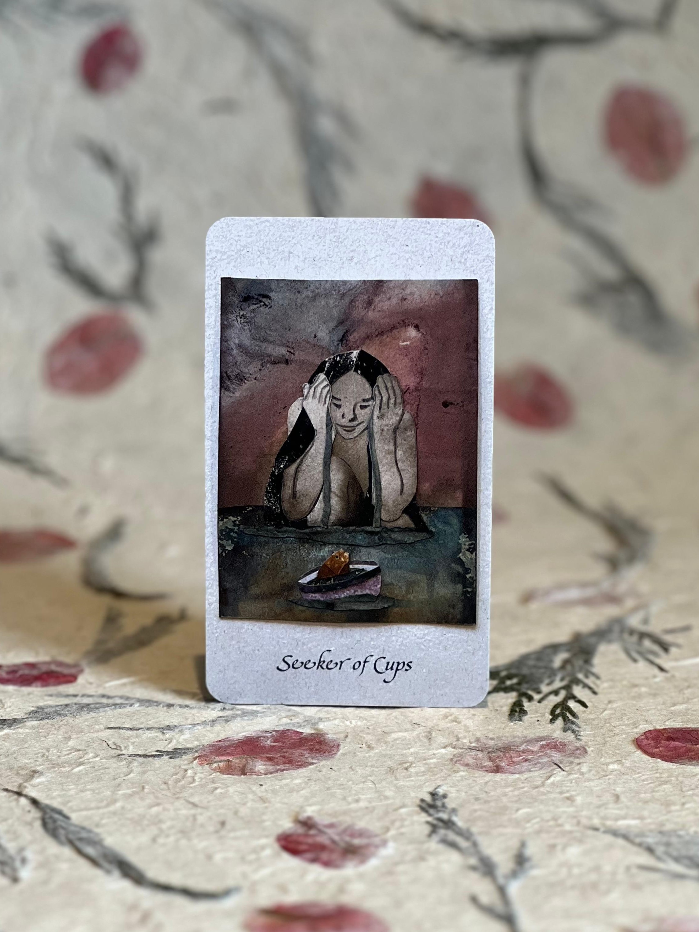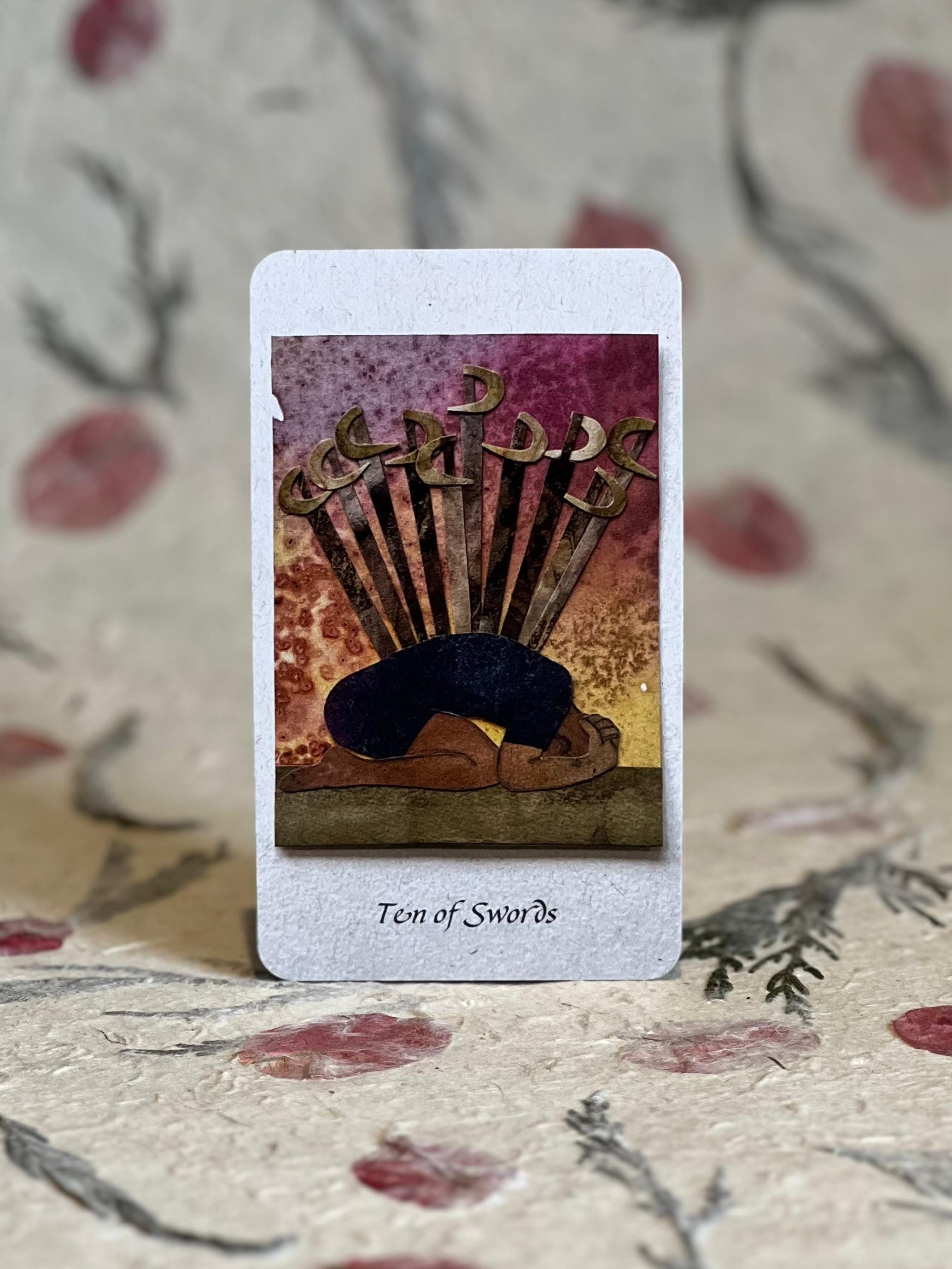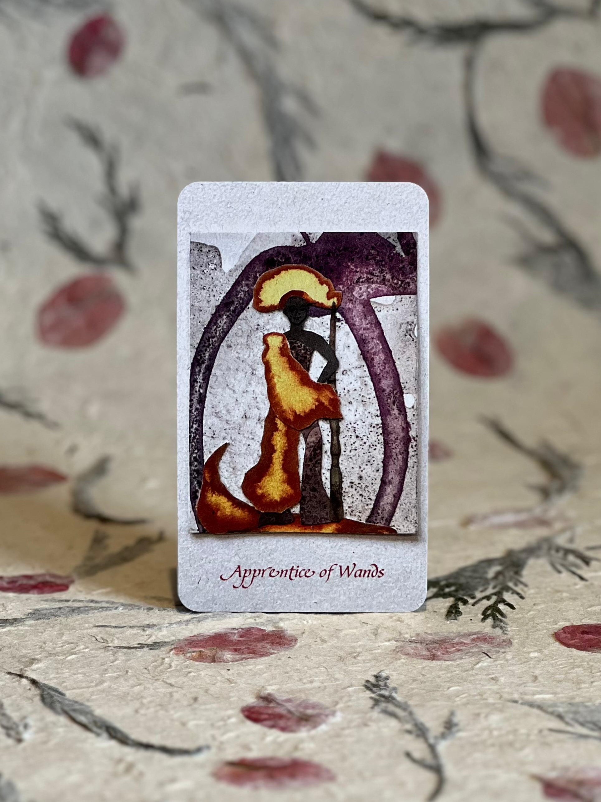 The artwork and guide for the deck was created in Western Massachusetts by Jorie Morgan with channeled wisdom from the natural world, inspiration from centuries-old tarot traditions, and assistance from their guides (the SiNK Spirit Collective). Each card is a collage using bits of natural ink monotypes and natural dye eco prints (and a little bit of natural ink painting too).