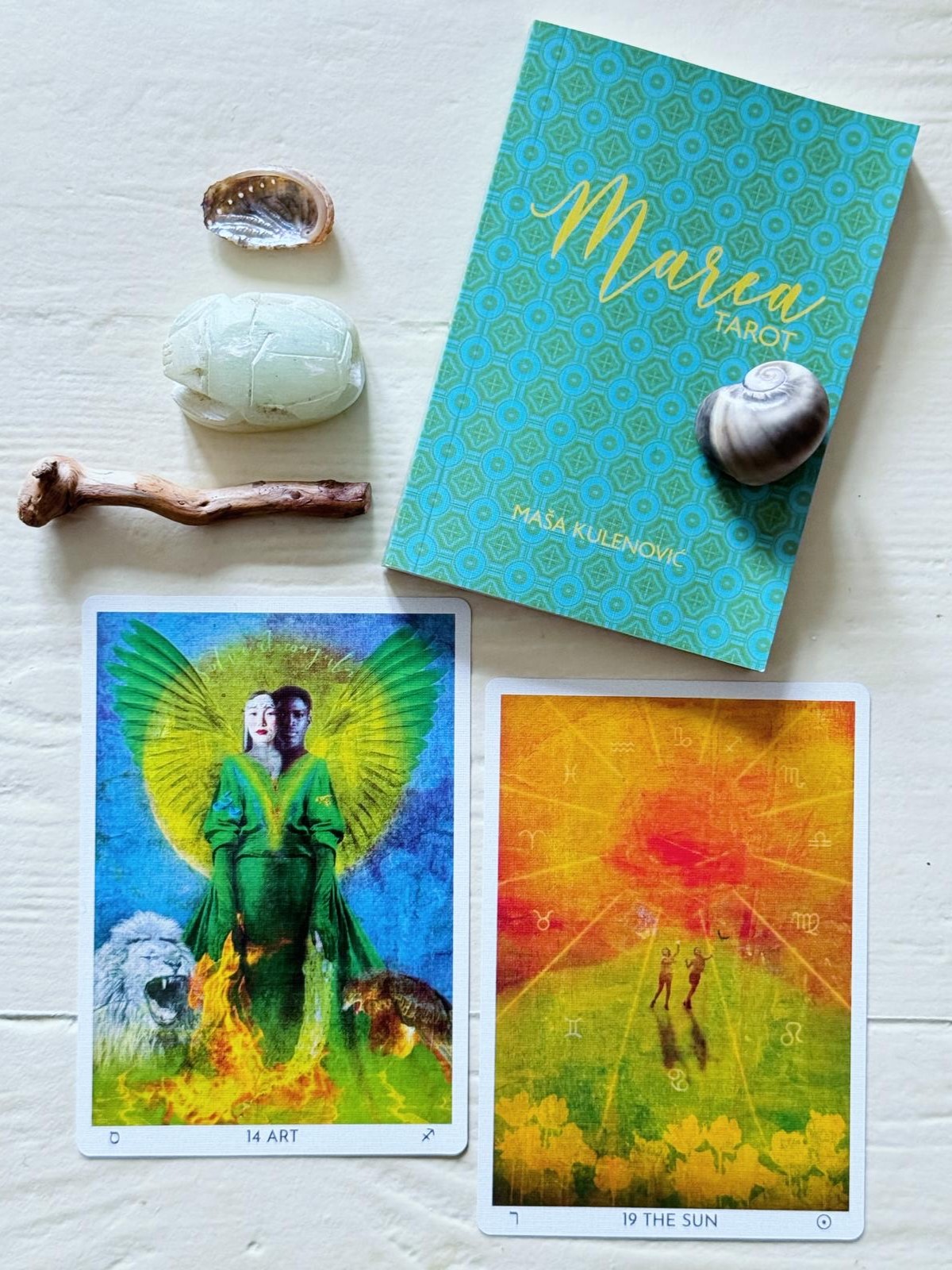 The Marea Tarot is a deck of 82 cards, featuring artwork entirely created by Maša Kulenović. It is inspired by the renowned Thoth Tarot by A. Crowley and Lady F. Harris. Maša’s aim is to introduce as many people as possible to the Thoth system and provide a modern alternative for those who already appreciate this system.