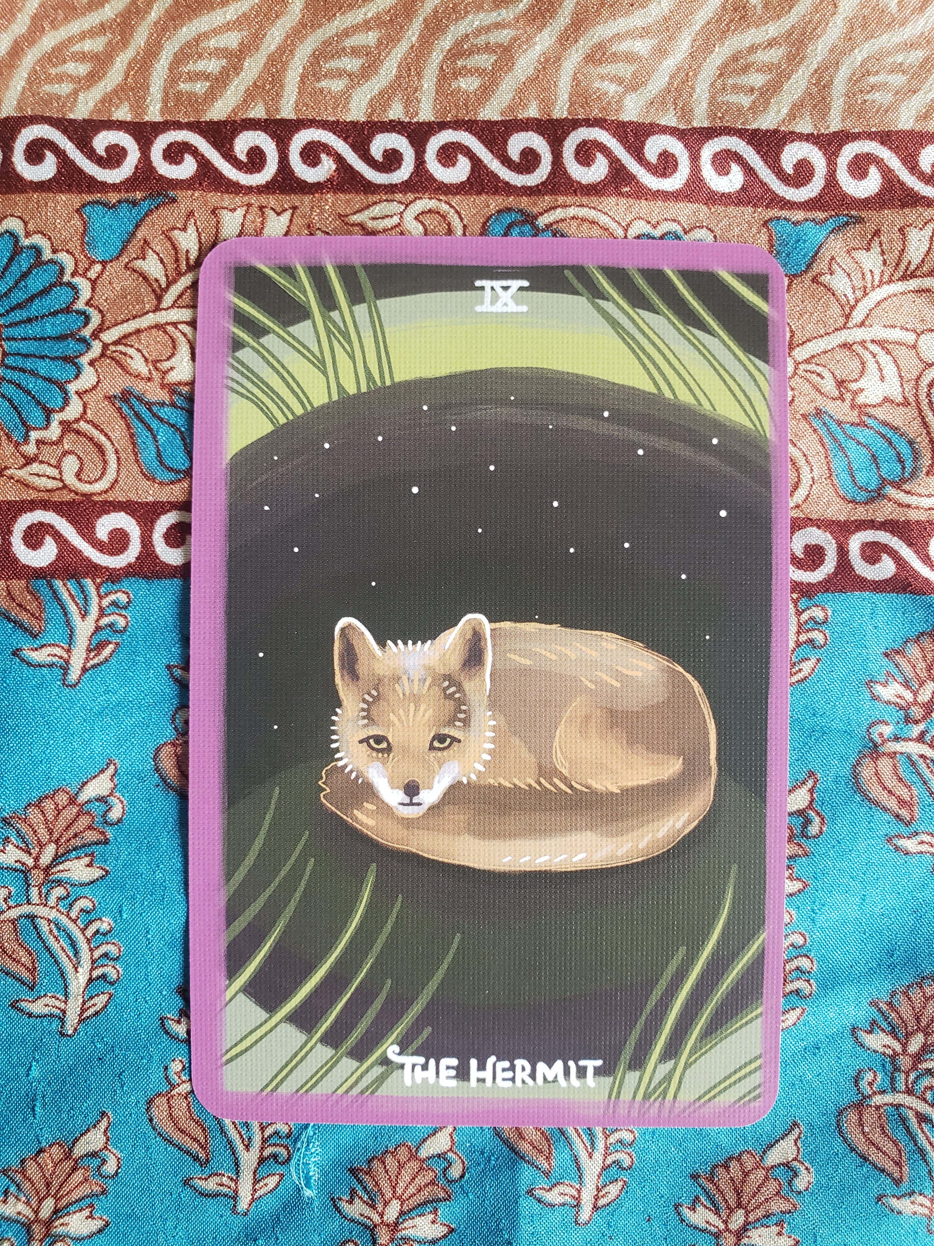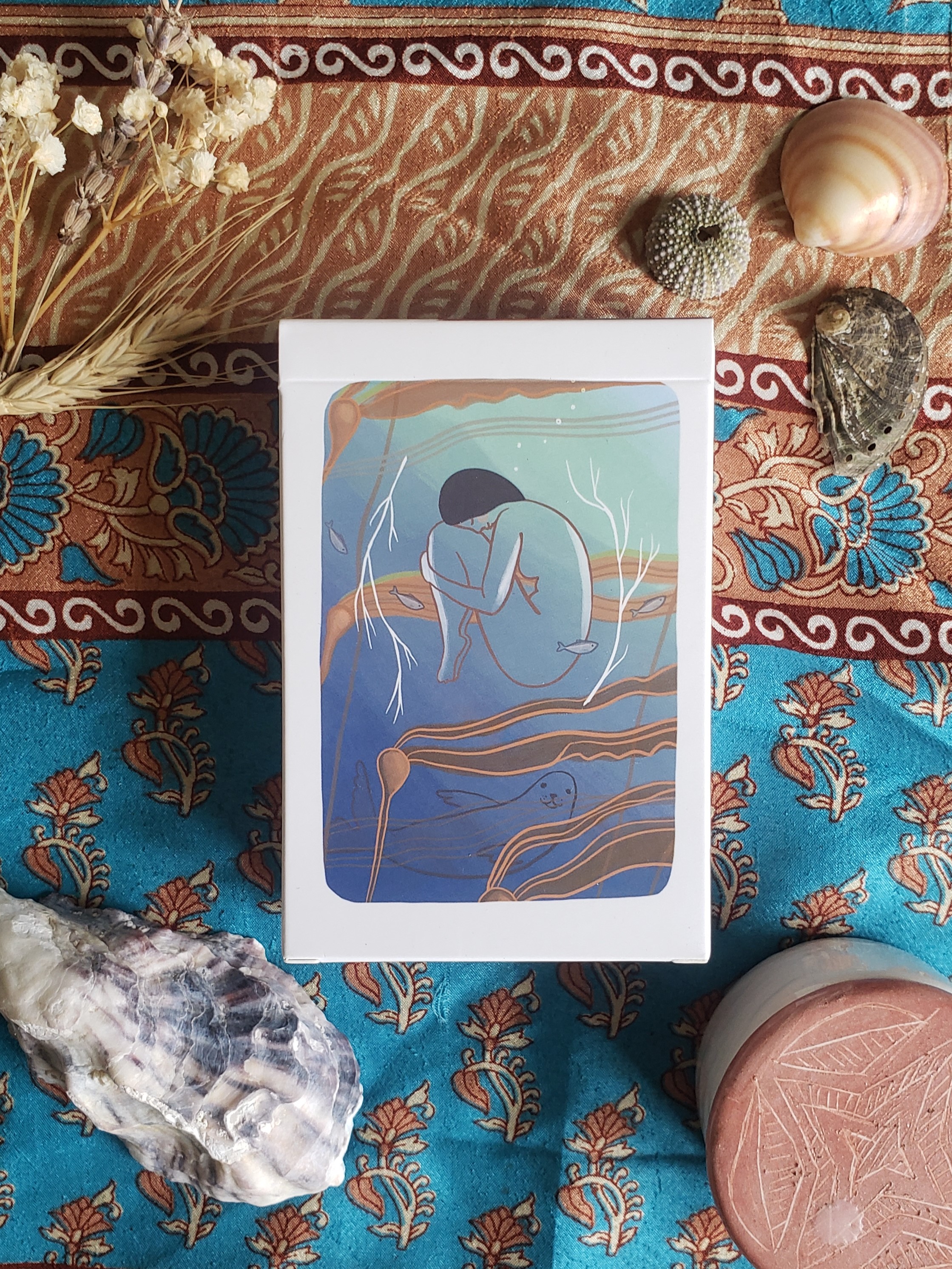 This is the Gentle Tarot (linen edition) by Mari in the Sky. Mari is a nature -inspired illustrator, who created this hand-drawn tarot deck filled with imagery influenced by life in remote Alaska. This Gentle Tarot deck is designed to support and encourage you to follow your wildest dreams, as it has supported and encouragd Mari.