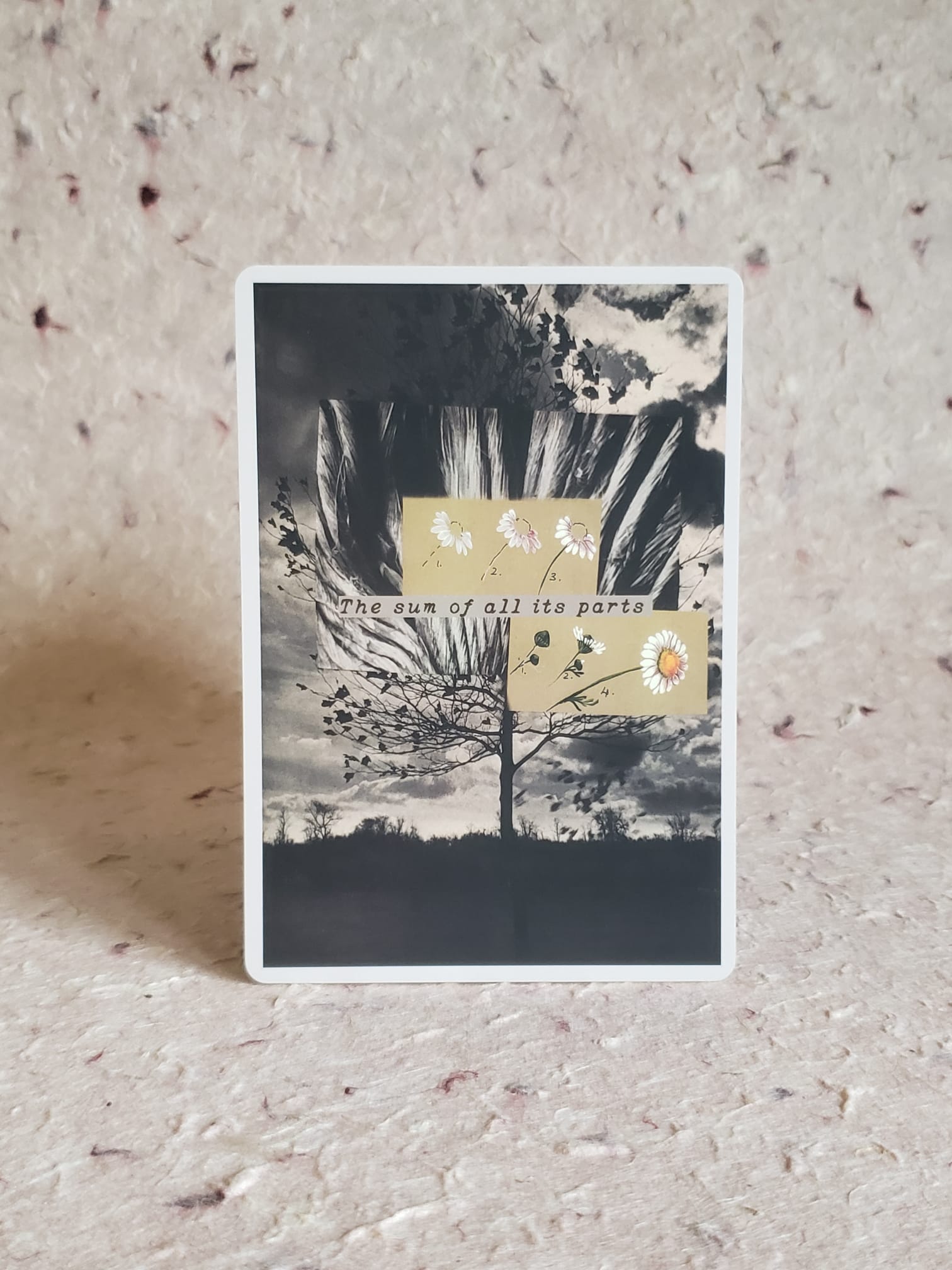 - Cards: 58 cards, hand made analog collage